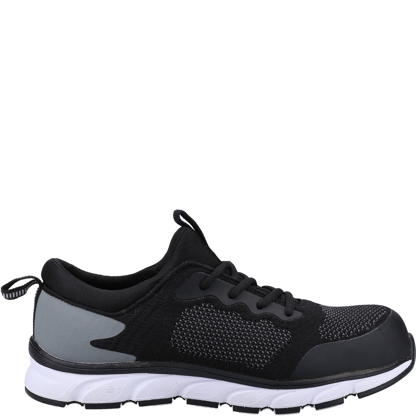 Lightweight sporty safety trainer with athletic breathable moisture wicking mesh upper and flexible traction EVA/Rubber outsole
