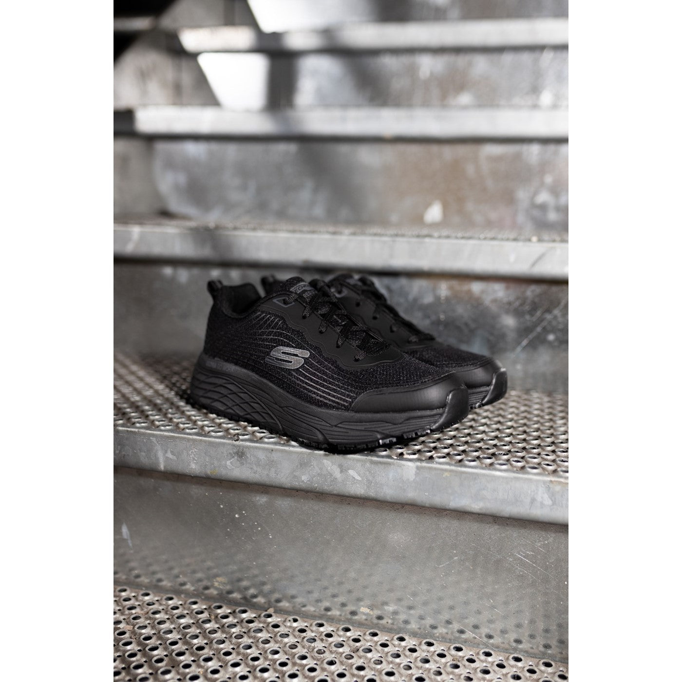 Maximize your comfort for all day walking and safety with Skechers Work Relaxed Fit: Max Cushioning Elite SR - Rytas shoe. A slip-resistant lace-up work trainer with a synthetic upper and Air-Cooled Memory Foam insole and Max Cushioning midsole.